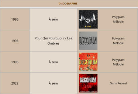 GroupedeHARDROCKforméparYvesBruscoen1993.LeTriocomposelestitres,Vivisigne les textes et ainsi DECORUM sort l’Album « A ZERO » en 1996.Legroupepartentournée,etFredGuillemetprendralabassesurquelquesdates.L’album épuisé depuis 29 ans est réédité par Guns Record en 2022.