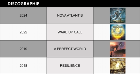 KingCrownwasfoundedin2018followingtheabandonmentofthenameÖblivïon-foundedin2015byJo& David Amore,aftertheirdeparturefromNightmare-withwhomtheyrecorded10albums(studios&live)and touredallaroundtheworldwithwith AfterForever,Sabaton,FreedomCall,Saxon,CrimsonGloryandmany othersbands,thenplayedinthebiggestfestivalslikeWacken,Hellfest,70000Tonsofmetalcruise,Israel, Dubai....- and the release of their 1st album "Resilience".KingCrown,theFrenchpowermetalband,isbackwiththeirhighlyanticipatednewalbum.Knownfortheir dynamicsoundandcompellinglyrics,KingCrownquicklymadetheirmarkonthemetalscenesincetheir formationin2018bythe Amorebrothers. Theirdebutalbum,"APerfectWorld"(2019),offeredablendoffast-pacedanthemsandemotionalballads,allunifiedbypolishedproductionandastrongsenseofmelody.The band'ssophomorerelease,"WakeUpCall"(2022),exploredthemesofpersonalandsocialawakening, challenging listeners to confront the world around them. NowKingCrownpushestheircreativeboundariesevenfurtherwiththeirlatestalbum.Describedasamore maturework,thisnewreleasedelvesdeeperintobothsoundandtheme.Fanswhoenjoyed"WakeUpCall" willcertainlyappreciatethisnewalbumproducedbytherenownedSimoneMularoni(DGM).Behindeach trackliesathemeconnectedtothealbum'sconcept,manyofwhichdrawinspirationfromenduringmyths andlegends.Thebandhassuccessfullycombinedamythologicalandhistoricalatmospherewiththeir powerfulmusic,resultinginacompellingandlayeredlisteningexperience.KingCrown'ssoundisshapedby awiderangeofinfluences,frompowermetalgiantslikeIronMaiden,GammaRay,SymphonyX,Masterplan, andHelloween.Theresultisapowerfulmixofmelodicmetal,catchychoruses,andadiverserangeof themes that resonate deeply with listeners. Overtheyears,KingCrownhasrefinedtheirsound,optingforgreaterpoweranddirectionalitywhile maintainingtheirsignaturemelodicapproach.Theirevolutionreflectstheirdesiretocreatemusicthatnot onlycaptivatesbutalsoleavesalastingimpact. Astheycontinuetoexplorenewsonicterritories,KingCrown remainsdedicatedtodeliveringhigh-energyperformancesandcreatingmusicthatspeakstotheheartofthe metal community.