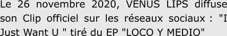 Le26novembre2020,VENUSLIPSdiffusesonClipofficielsurlesréseauxsociaux :"I Just Want U " tiré du EP "LOCO Y MEDIO"
